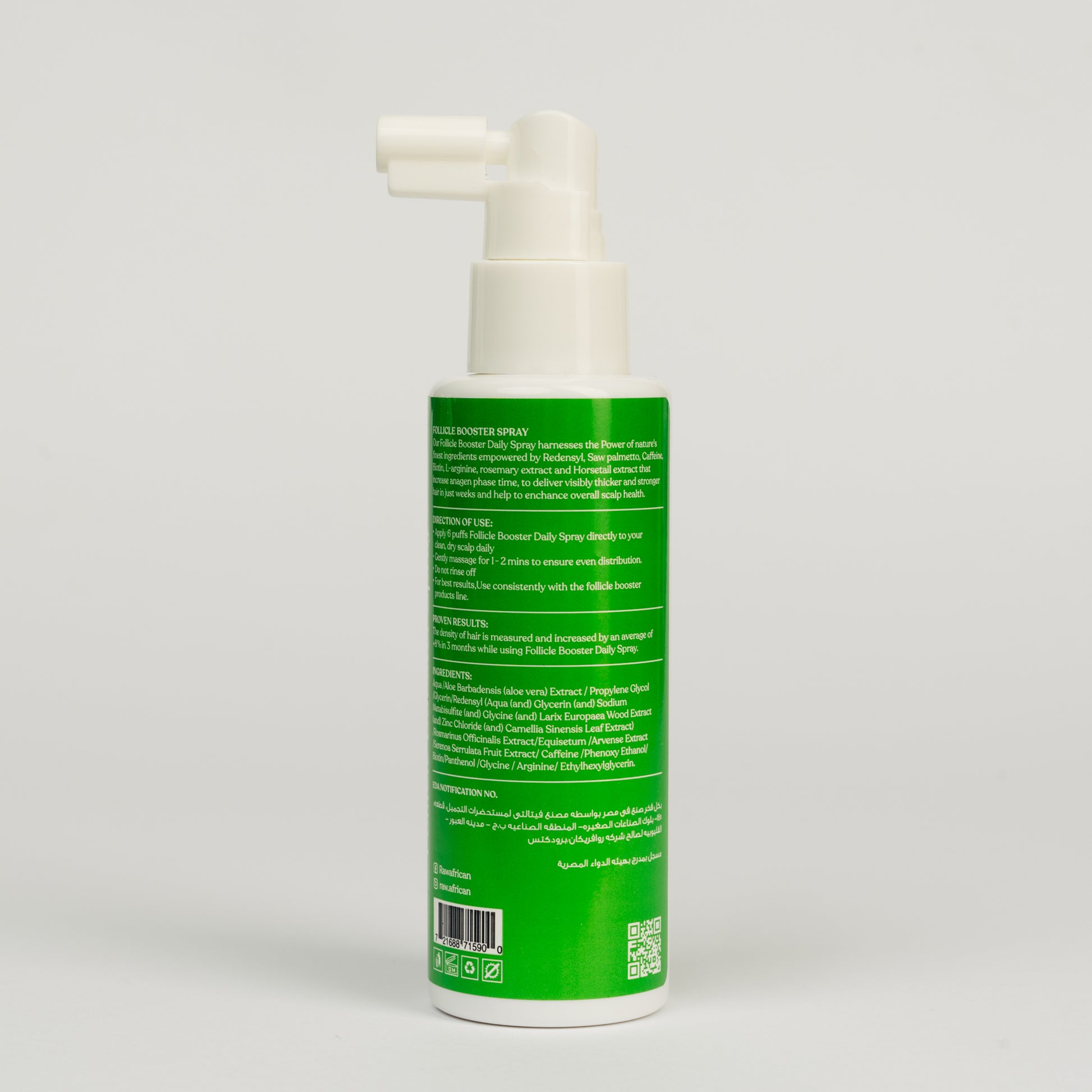 فوليكل بوستر سبراي هو تركيبة خفيفة غير دهنية للاستخدام اليومي، مصممة لمكافحة تساقط الشعر، وتعزيز كثافته، وتغذية فروة الرأس. يعتمد على مكونات فعّالة مثبتة علميًا تعمل بتناغم لتحسين صحة بصيلات الشعر وتحفيز نموه.